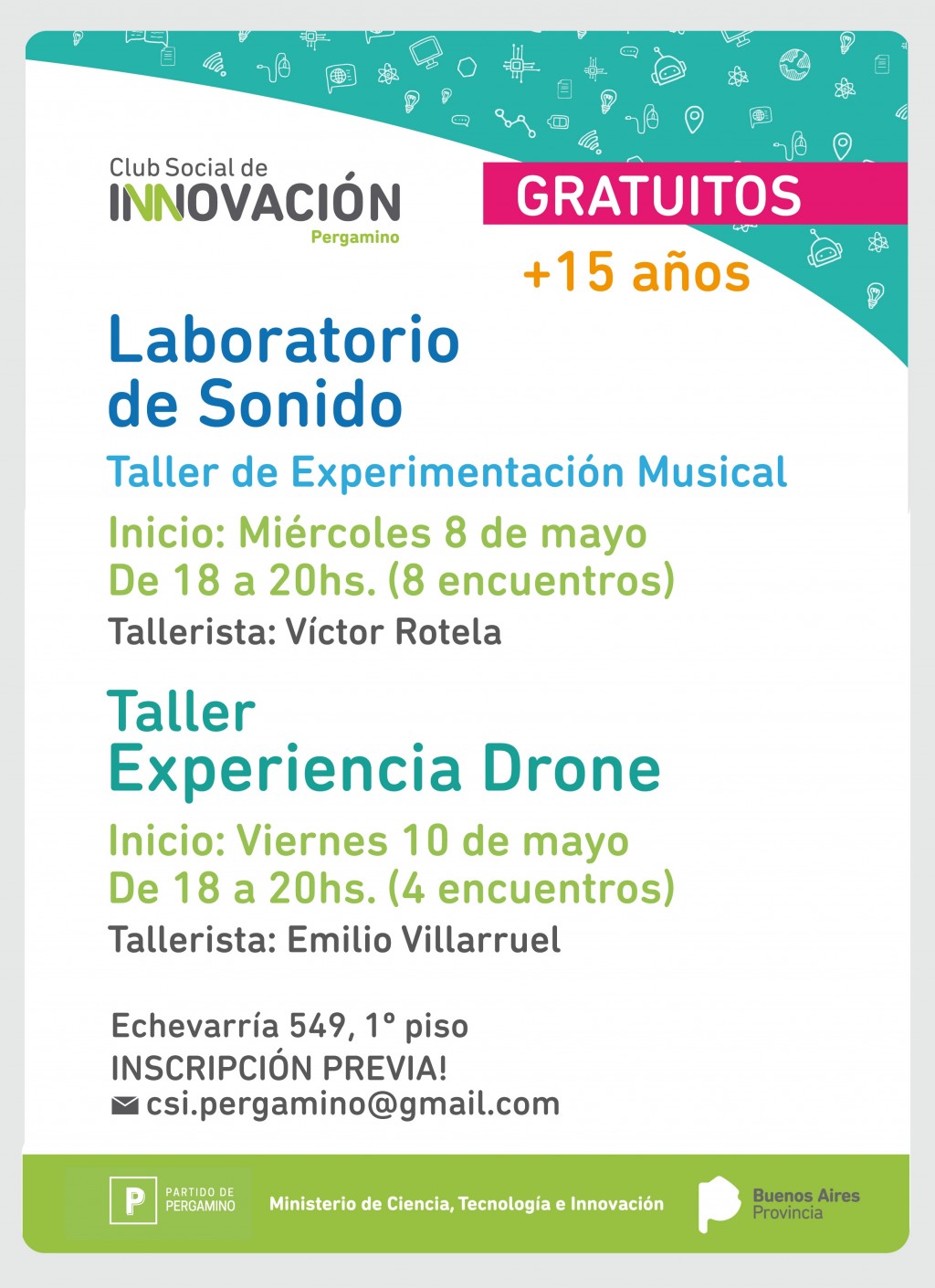 La semana próxima comienzan en el Club Social de Innovación dos nuevos talleres gratuitos destinados a mayores de 15 años, con inscripción previa: un laboratorio de experimentación musical y un taller de experiencia en drones.
