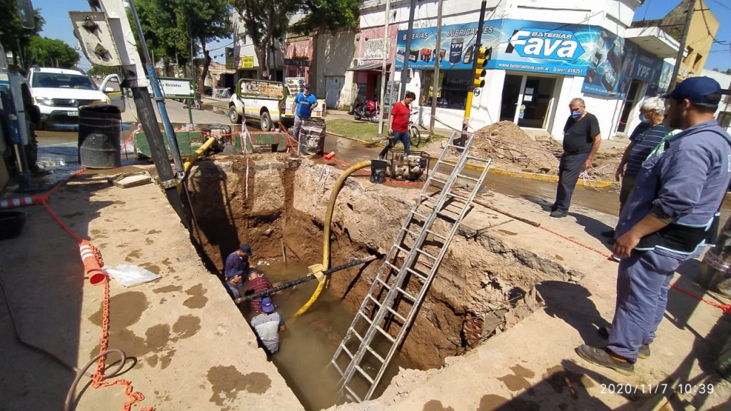 También se sumarán dos nuevos pozos que se están ejecutando en la zona para abastecer de nuevas fuentes. En dicha intersección se encuentran emplazadas cinco llaves en cañería de impulsión de hierro, algunas de ellas de importante tamaño y de más de 79 años de antigüedad, colocadas sobre cañería de 400 mm. Se trata de una tarea de cierta dificultad por la profundidad a la que se realiza. El objetivo que se persigue es reparar las dañadas y hacer tareas de mantenimiento en las otras.