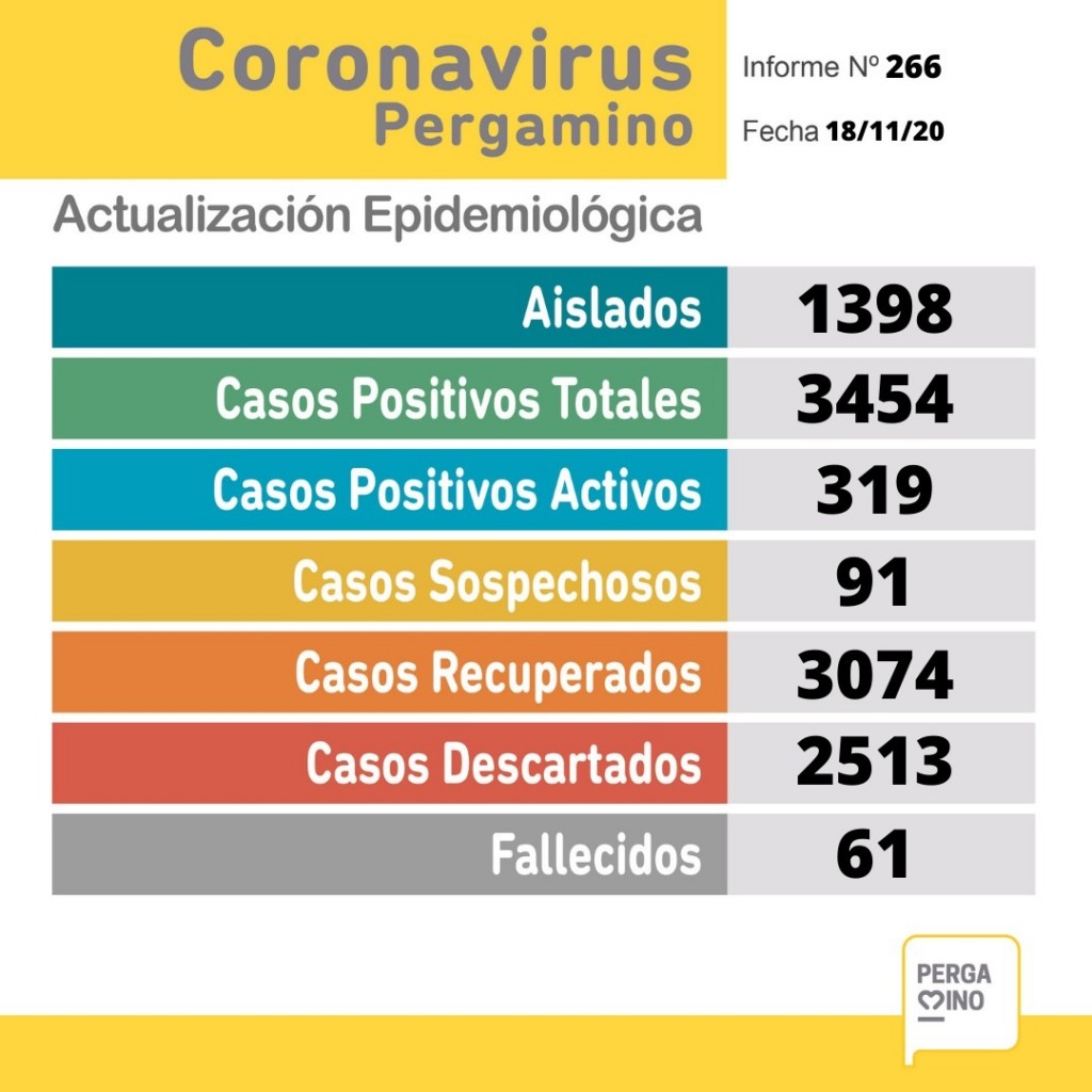 La Municipalidad, a través de la Secretaría de Salud del Partido de Pergamino, brinda el parte epidemiológico del día e informa: