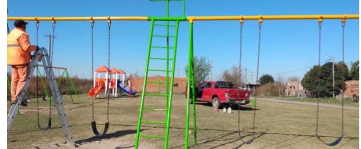 Las áreas de servicios de la Municipalidad trabajan todas las semanas en los distintos espacios verdes públicos de nuestra ciudad con tareas como forestación, paisajismo, pintura de juegos y mantenimiento de los mismos.