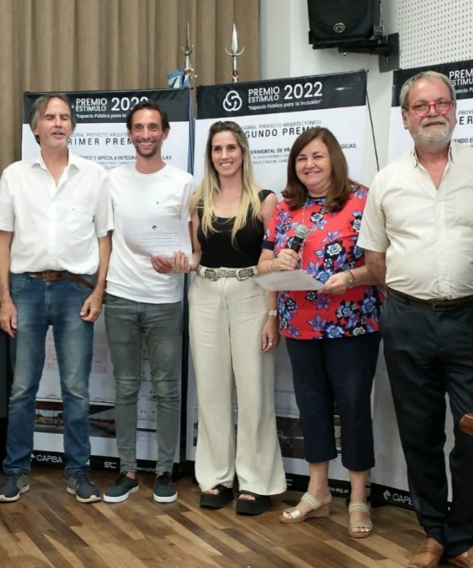 La mención especial al Proyecto Parque Belgrano fue recibida por los arquitectos Maximiliano Giusti y Marianela Polo, quienes hoy se desempeñan en la Dirección de Arquitectura de la Secretaría de Desarrollo Urbano de la Municipalidad de Pergamino.