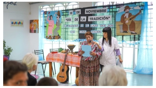 En un marco de familiaridad y emoción, “La casita de mis viejos” (Mendoza y R. Raimundo) se llenó de familias, docentes, autoridades, abuelos y jóvenes de la EEA No. 1 “Escuela Agrotécnica” que participaron del acto del Día de la Tradición en el marco de la extensión de la EEP No. 701 que allí funciona. Al inicio de la jornada la profesora Viviana Polizzi, inspectora de Educación de Jóvenes, Adultos y Adultos Mayores, dio la bienvenida a los presentes y agradeció a las familias por su acompañamiento; “destaco las ganas de aprender, la necesidad de estar acompañado y de compartir momentos e historias”, enfatizó. También estuvieron presentes Ivana Piaggio, directora de la Escuela Primaria de Adultos Nº 701 y Nora Béliz, vicedirectora de Escuela Agrotécnica. “Estamos muy contentos de festejar el Día de la Tradición en un salón donde tenemos a todas las generaciones, porque esto nos garantiza que se sigan transmitiendo y se mantengan vivas. La tradición son nuestras costumbres, nuestra gastronomía, la música, la danza y lo más importante, nuestro Himno Nacional al que tenemos que seguir entonando con la misma energía y entusiasmo que hoy “, expresó el secretario de Desarrollo Social, Paolo Bonanno; quien además destacó la labor de la directora de la Tercera Edad, Adriana Salaberría y del personal que allí trabaja. Luego la jornada continuó con la participación activa de los adultos mayores y de los estudiantes de la Escuela Agrotécnica quienes compartieron música, danza y cerraron la jornada con una mateada acompañada con unas crocantes tortas fritas.