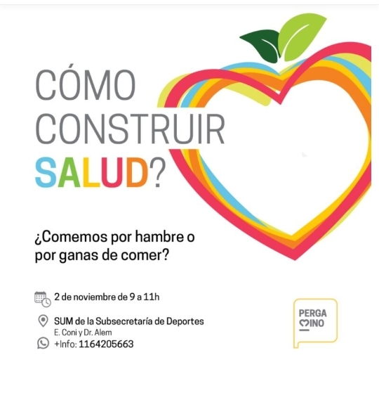Este sábado llega una nueva edición del Programa Cómo Construir Salud, donde se llevará a cabo el taller “¿Comemos por hambre o por ganas de comer?”. Inicia a las 9 horas en el SUM de la Subsecretaría de Deportes (Coni y Dr. Alem). Es gratuito y abierto a la comunidad.