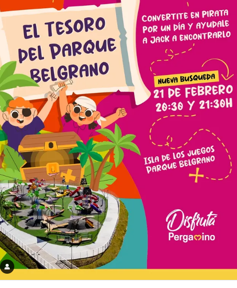 El Tesoro del Parque Belgrano cuenta la historia del Capitán Jack Espárrago, un antiguo pirata con más historias que tesoros, que desembarca en la Isla de los Juegos para relatar la increíble aventura que vivió en busca del legendario tesoro de Pergamino. Entre risas y misterio, el Capitán nos cuenta cómo, en una desafortunada partida de truco, perdió su amado barco, El Brócoli Errante, a manos del astuto Capitán Papa Frita.