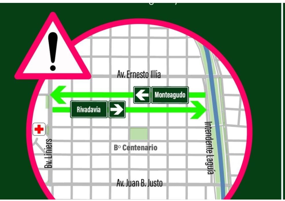 Esta modificación responde a lo establecido en la Ordenanza N.º 9949/24 y tiene como objetivo mejorar la seguridad vial y ordenar el tránsito en esa zona de la ciudad. ¿Cómo quedan los sentidos de circulación? • Monteagudo: tendrá circulación desde el arroyo hacia Bv. Liniers, es decir, continuando el sentido que ya tiene en la zona céntrica. • Rivadavia: pasará a tener circulación desde Bv. Liniers hacia el arroyo, es decir, también alineándose con el sentido que ya presenta en el centro. Se solicita a los conductores circular con precaución y prestar especial atención a la nueva señalización que se instalará en los próximos días.