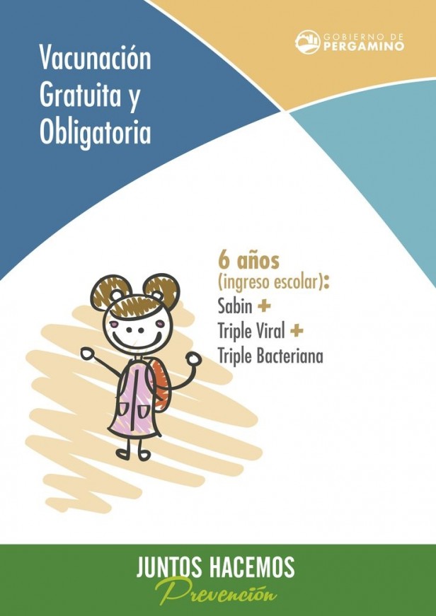 El Gobierno de Pergamino a través de la Secretaría de Salud recuerda a los padres la importancia de cumplir con la vacunación obligatoria para el Ingreso Escolar. La misma se brinda de manera gratuita, comprende los niños entre 5 y 6 años que comienzan la Escuela Primaria y consta de tres vacunas: Triple Viral, Triple Bacteriana y Sabin Oral.