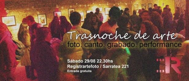 El Sábado 29 de Agosto se realiza una "Tras noche de arte", organizada por Registrartefoto en Sarratea 221, desde las 22:30.