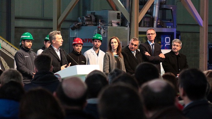 El último orador fue el presidente Mauricio Macri, quien cálidamente recordó que ha visitado muchas veces nuestra comunidad. “Hoy estamos abriendo una nueva planta, una planta que es mucho más que estas estructuras metálicas, estos bloques, las máquinas que vimos. Esta planta expresa lo que somos capaces de hacer los argentinos cuando los comprometemos, cuando confiamos, cuando creemos”, manifestó. Asimismo añadió que “el eje de todo lo que estamos haciendo, está en tener la autoestima puesta en hacer las cosas cada día mejor, y eso nos lleva a generar trabajos de calidad, y es lo que van a hacer ustedes acá y nos lleva al largo camino de pobreza cero, eso es lo valioso, hacia donde caminamos lo importante es que ya empezamos”.